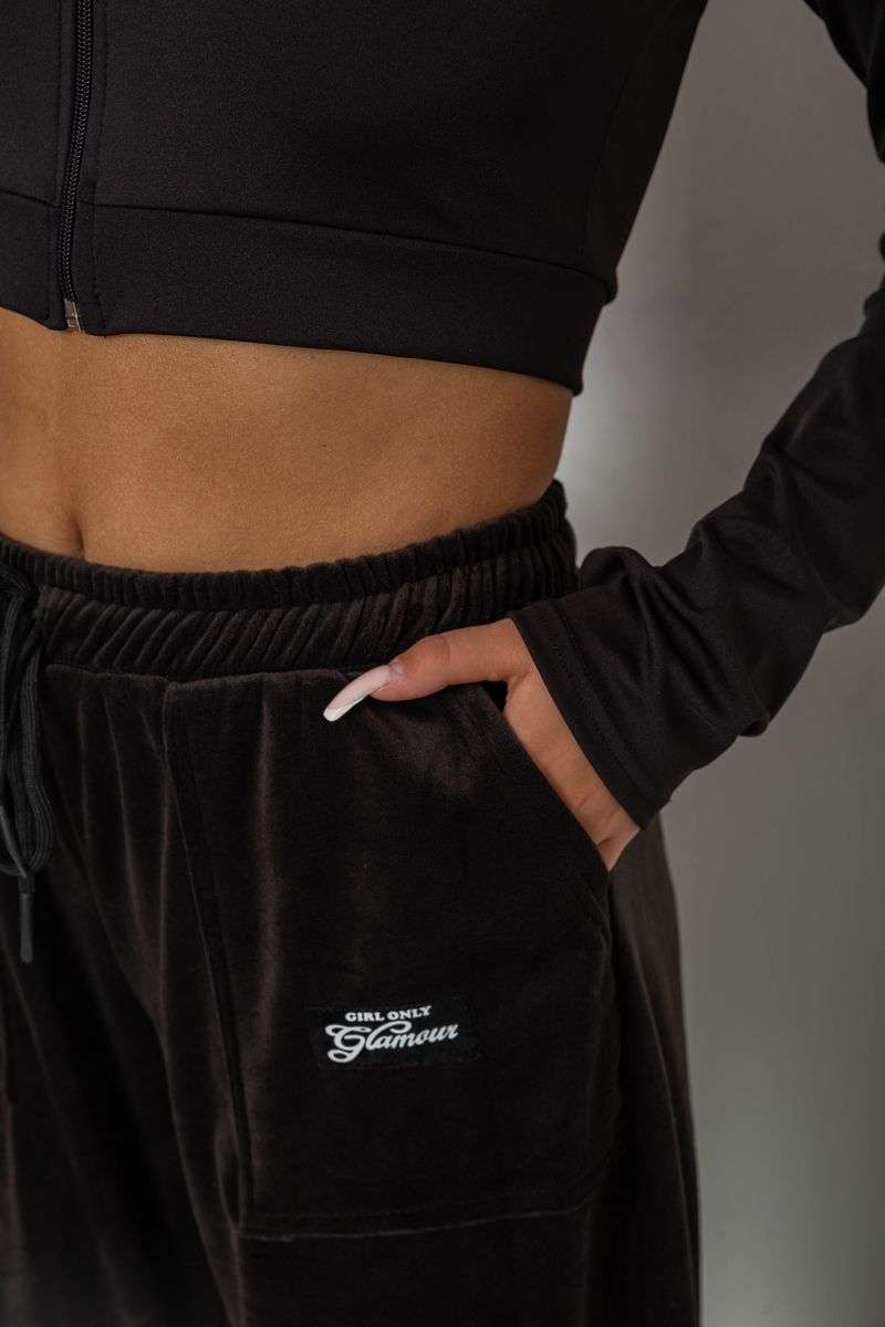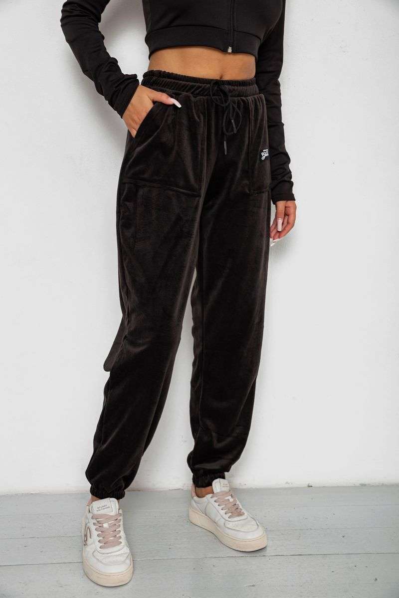 Спортивные штаны велюровые женские на флисе, цвет черный, 238R58649-1