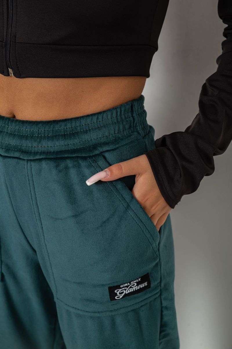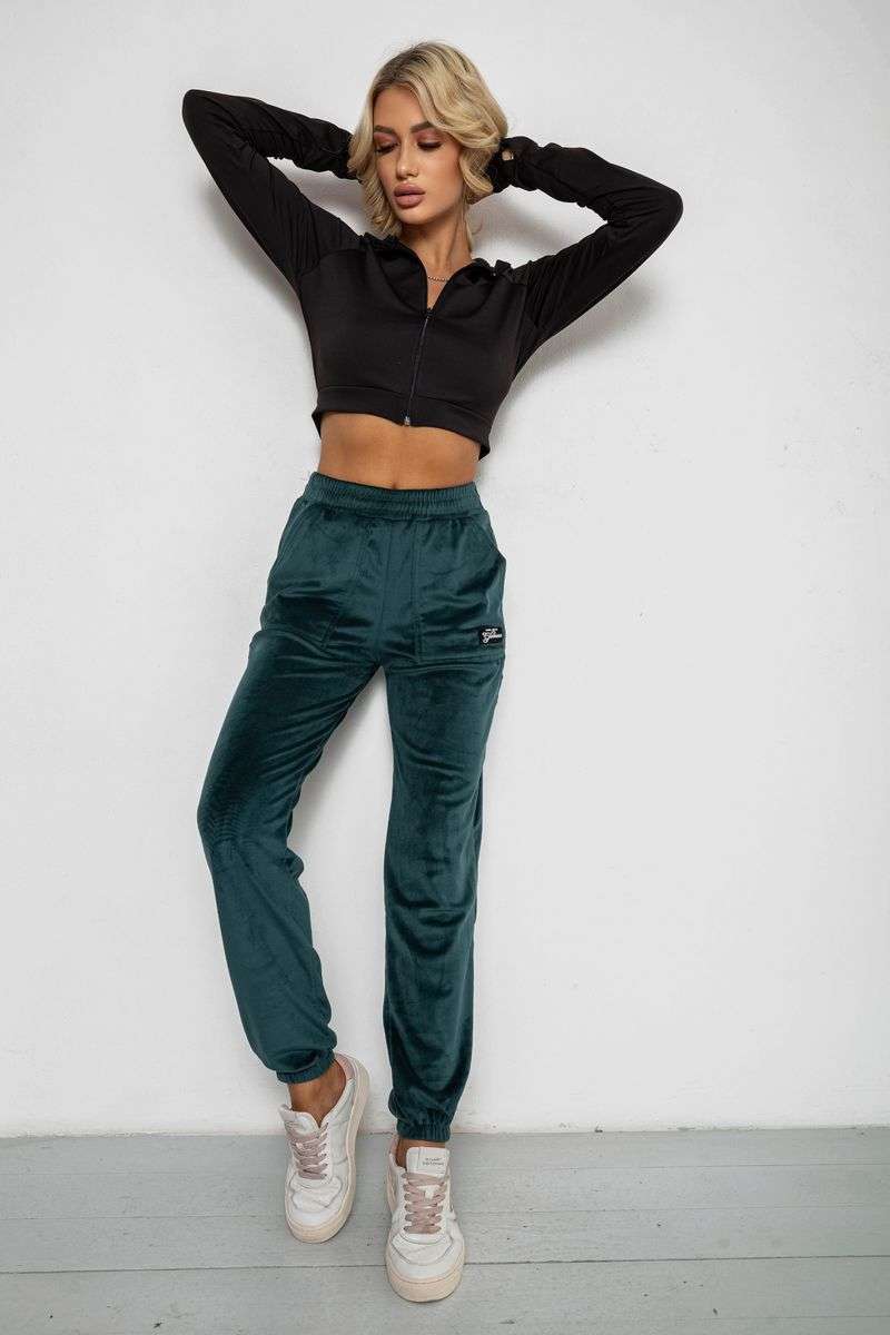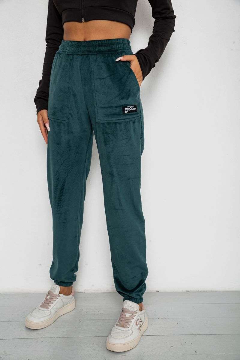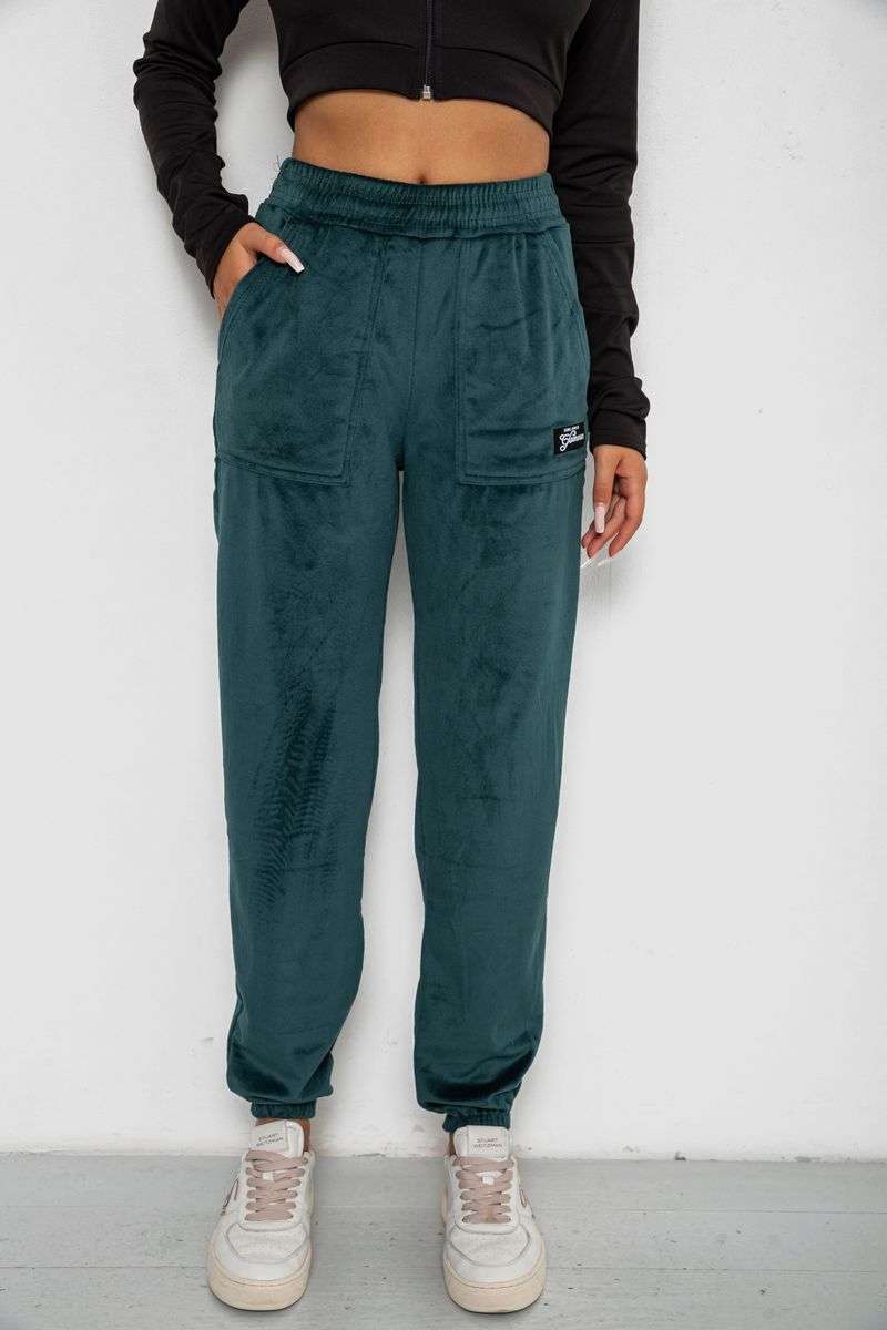 Спортивные штаны велюровые женские на флисе, цвет зеленый, 238R58649