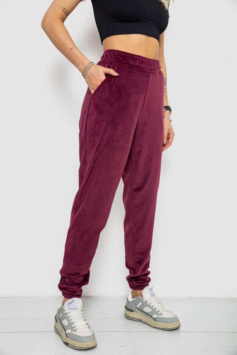 Спортивные штаны женские велюровые, цвет бордовый, 238R58646