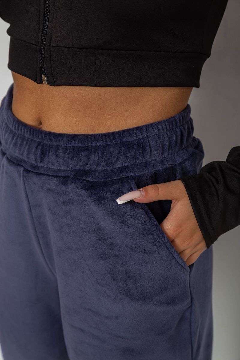 Спортивные штаны женские велюровые на флисе, цвет синий, 238R58646-1