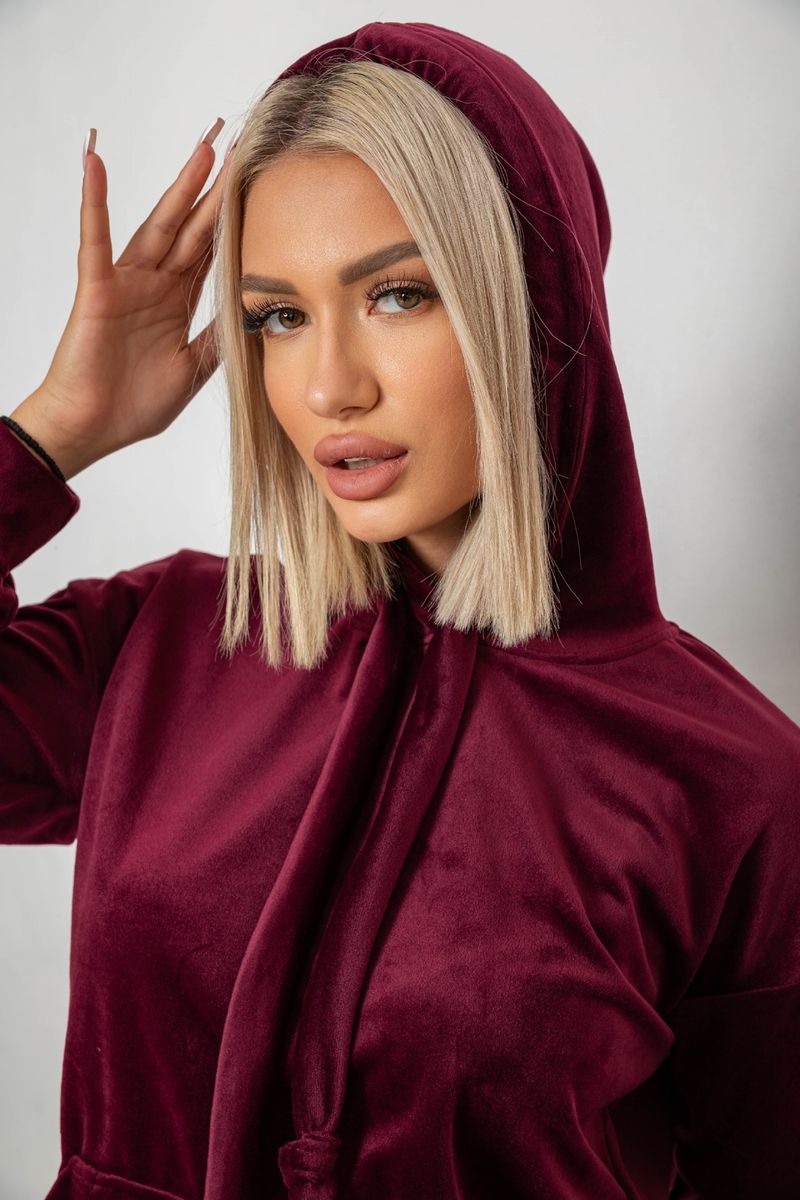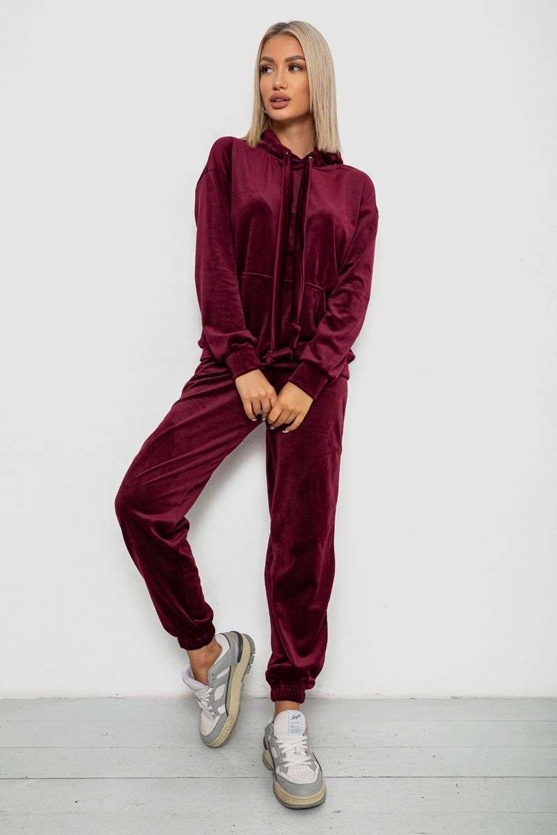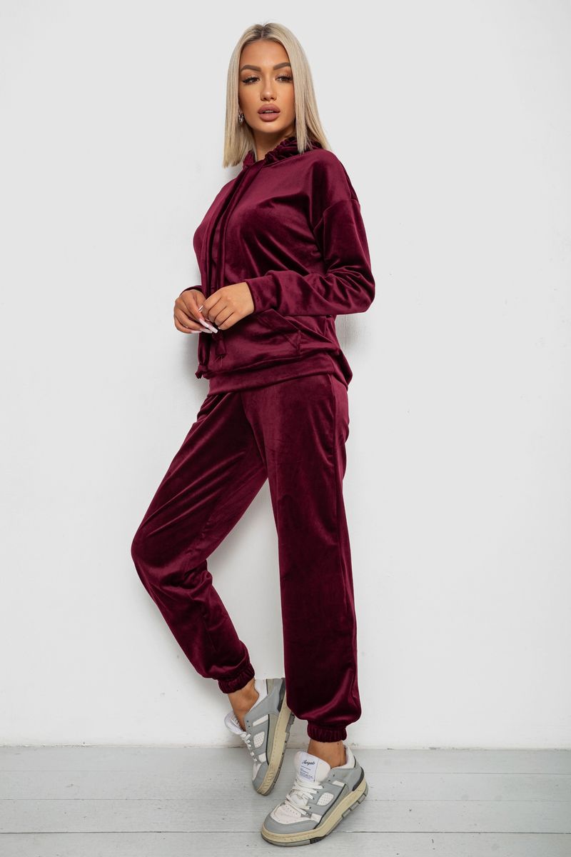 Спортивный костюм женский велюровый, цвет бордовый, 241R1530-5