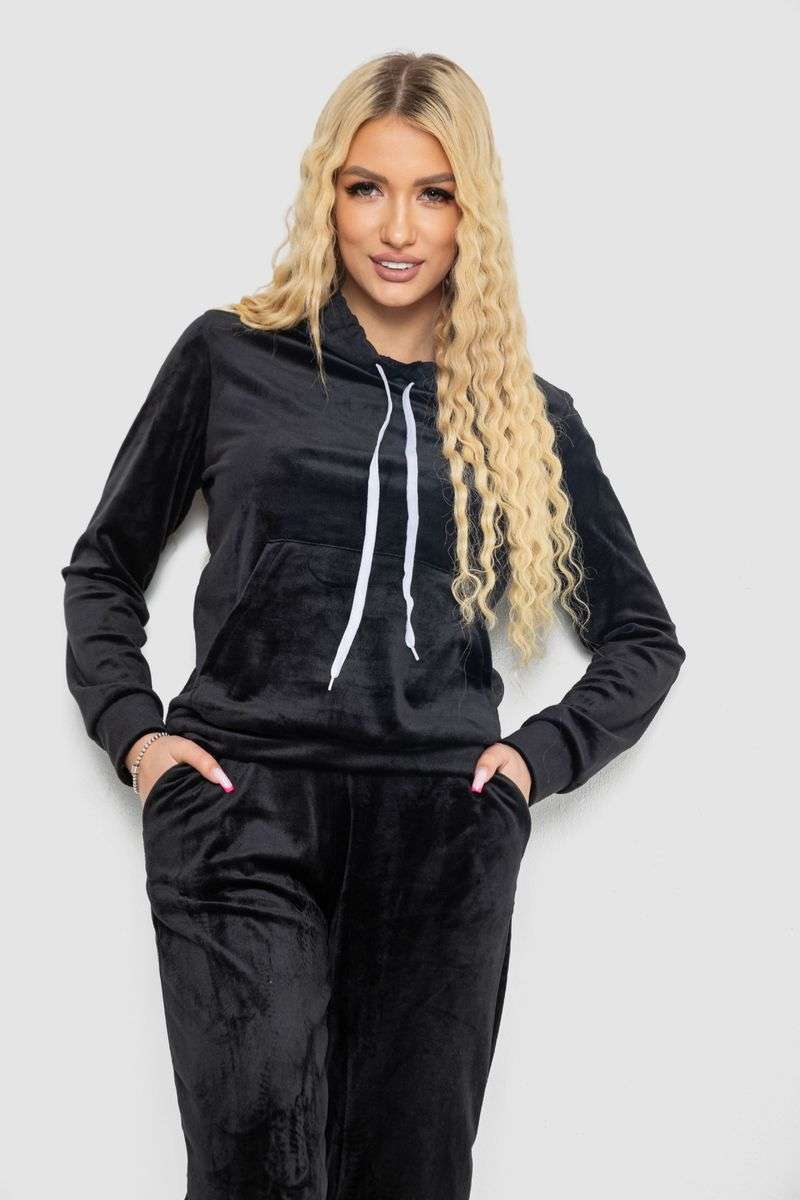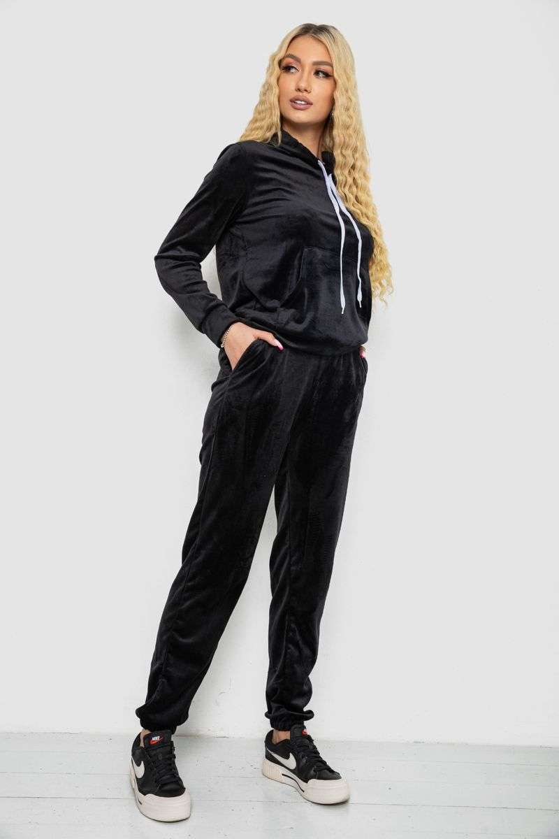 Спортивный костюм женский велюровый, цвет черный, 238R58570