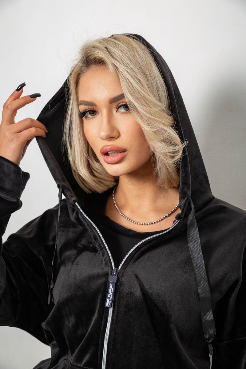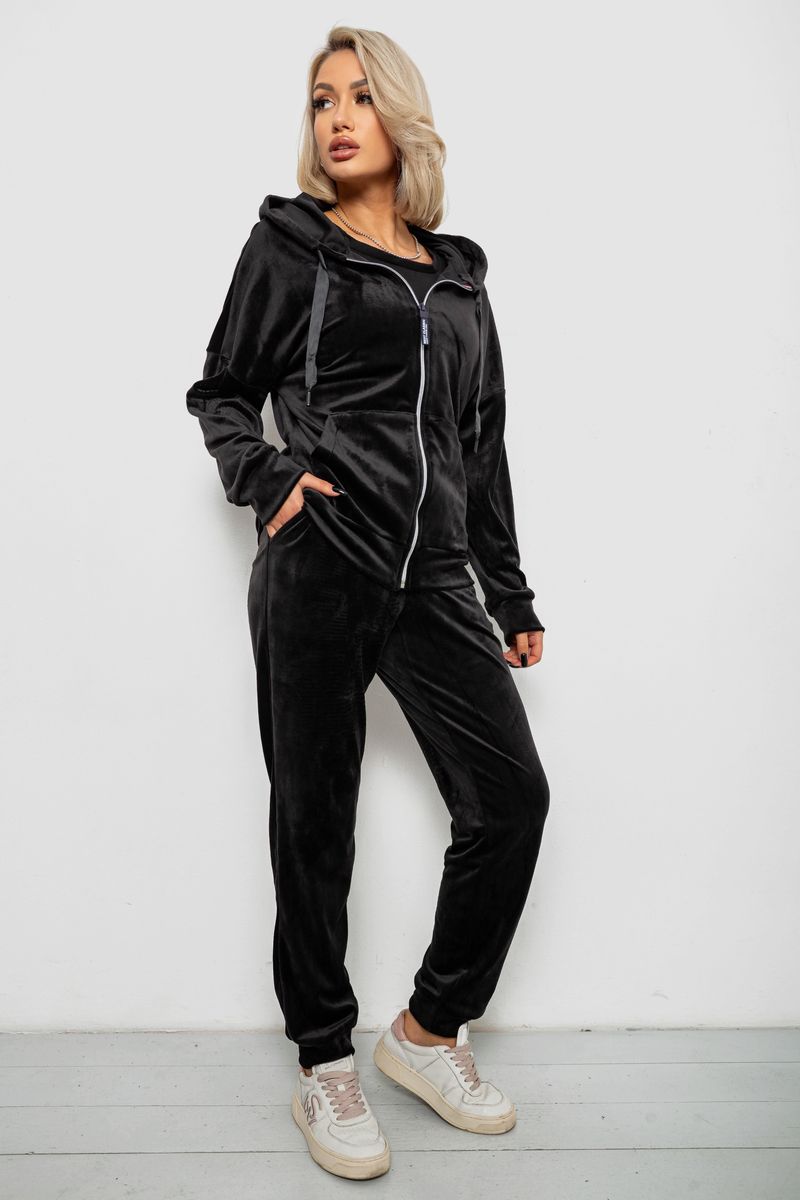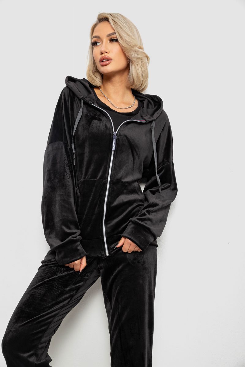 Спортивный костюм женский велюровый, цвет черный, 257R4122