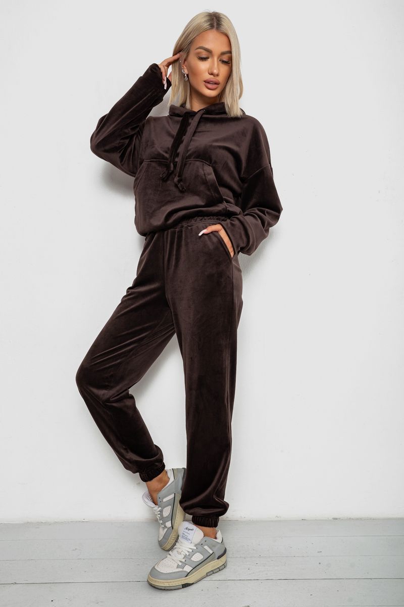 Спортивный костюм женский велюровый, цвет шоколадный, 241R1530-5