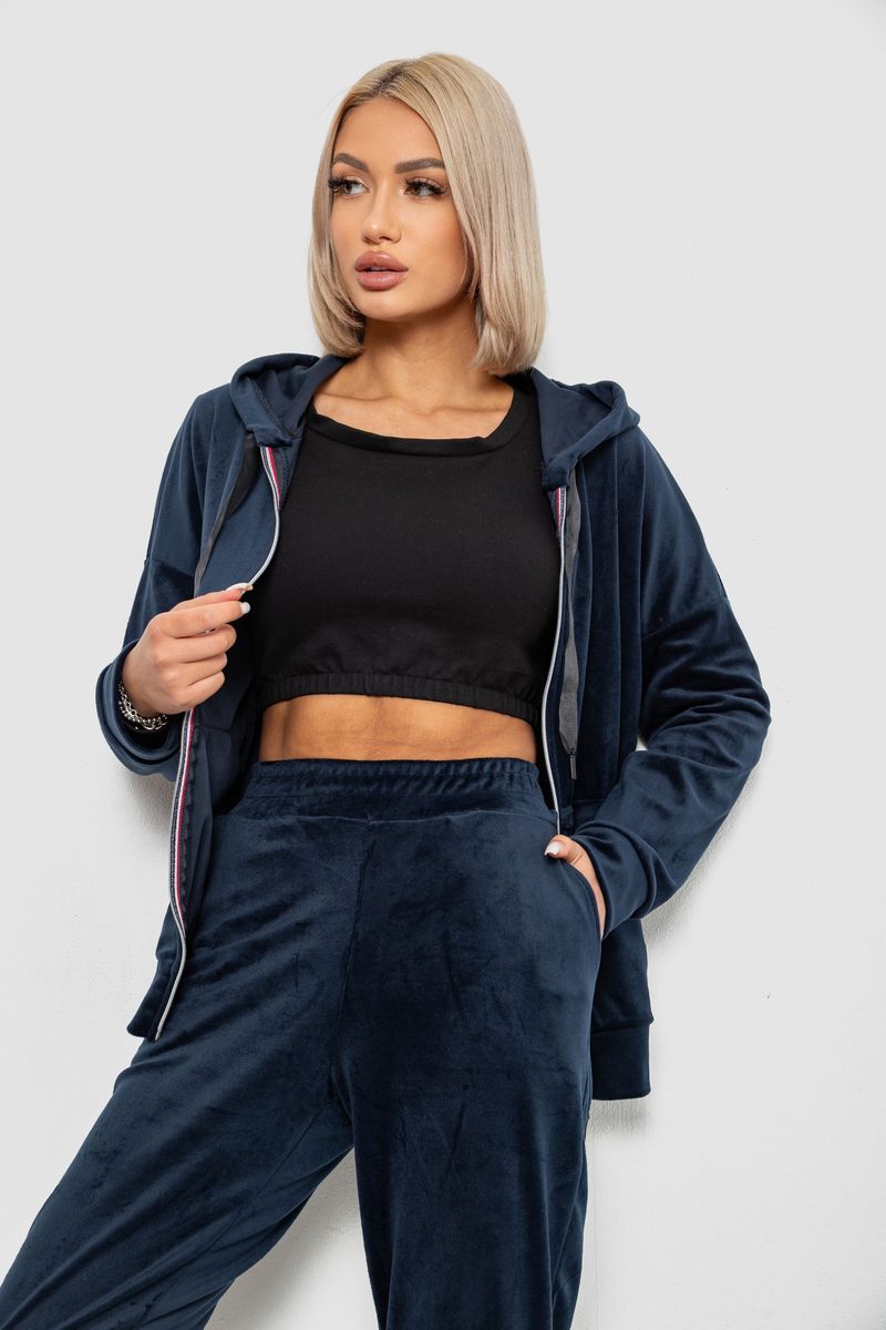 Спортивный костюм женский велюровый, цвет синий, 257R4122