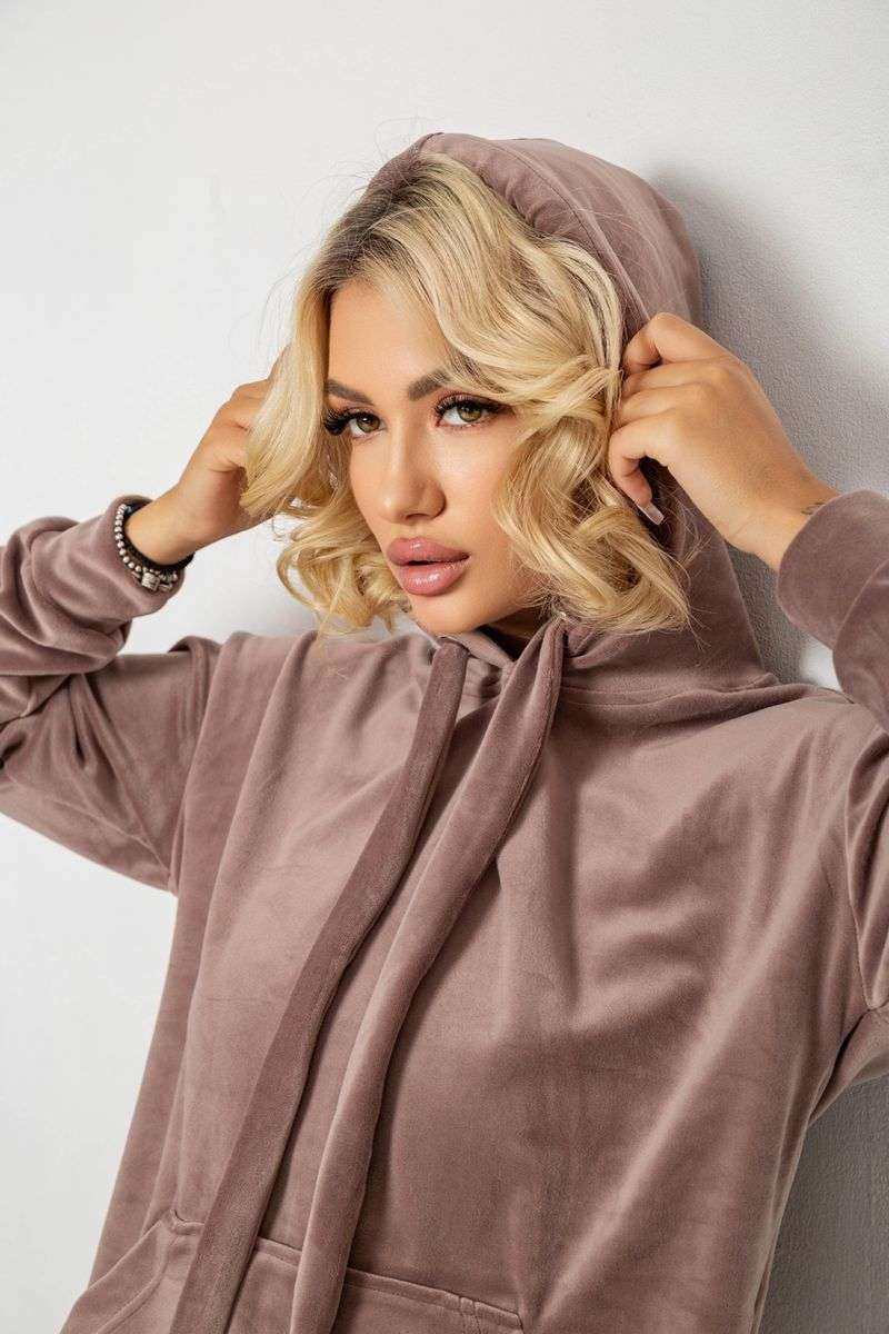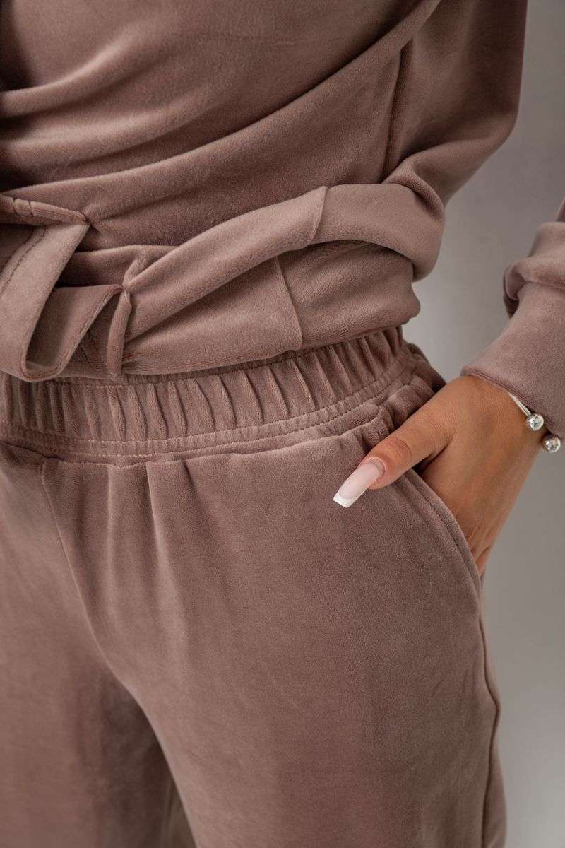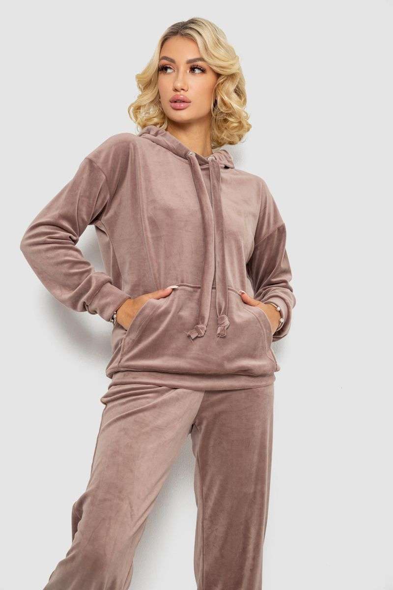 Спортивный костюм женский велюровый, цвет темно-бежевый, 241R1530-5