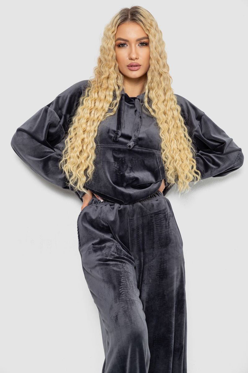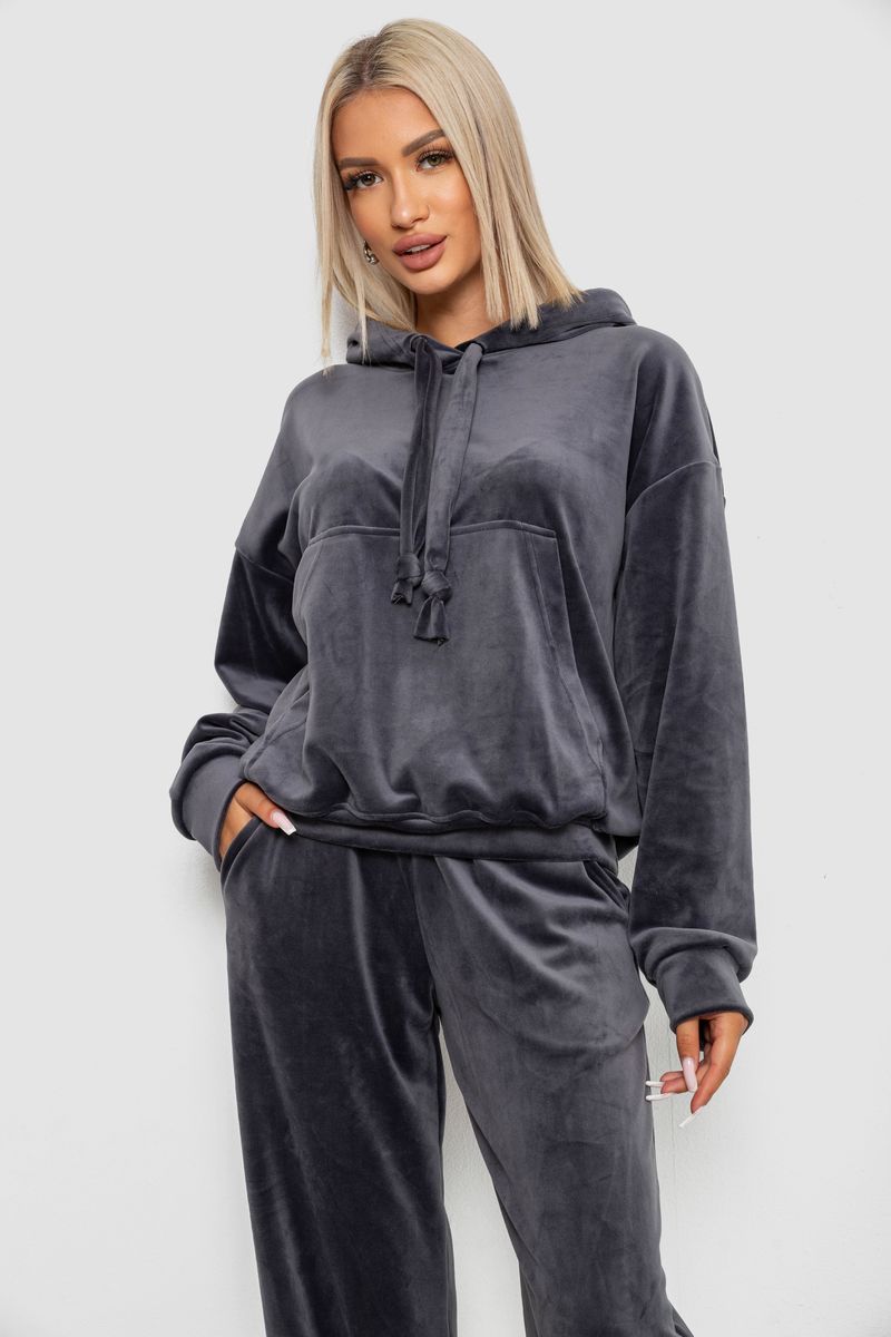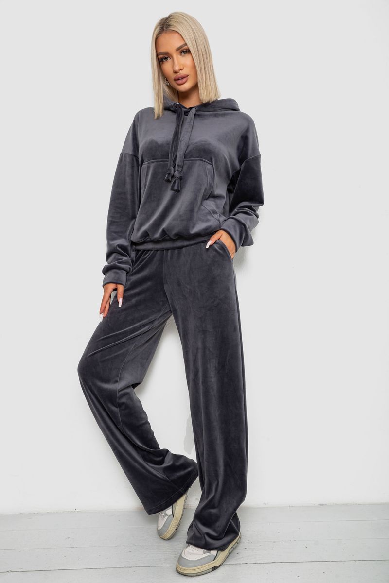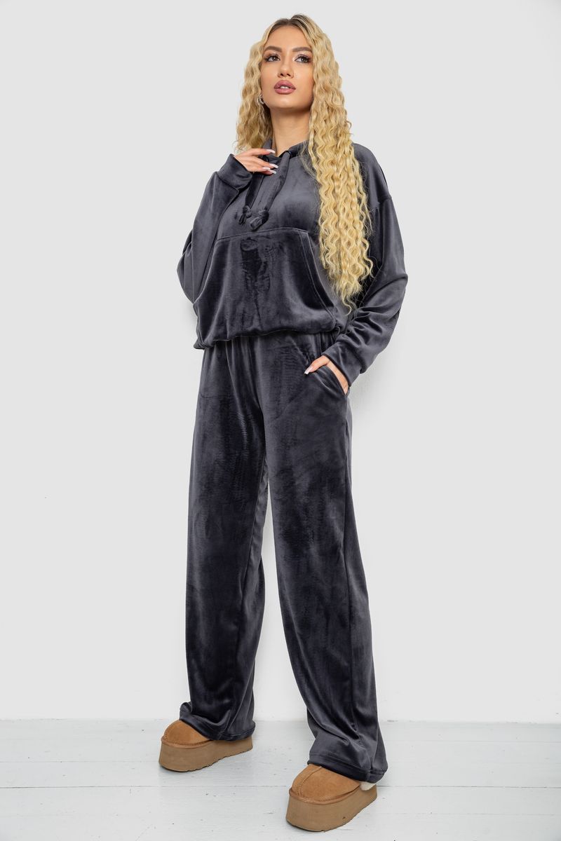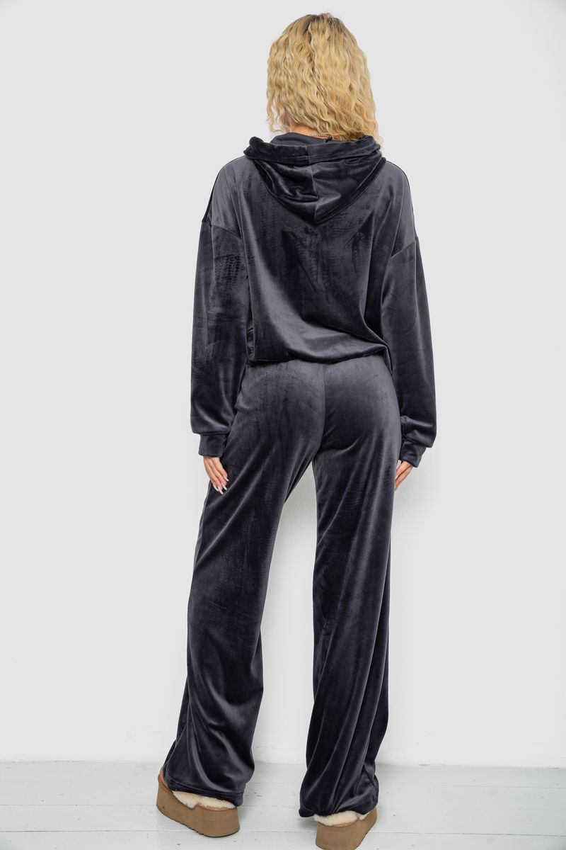 Спортивный костюм женский велюровый, цвет темно-серый, 241R2001-20