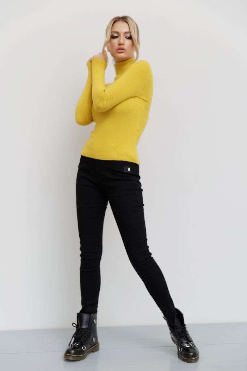 Стильный женский гольф в рубчик, цвет горчичный, 204R001