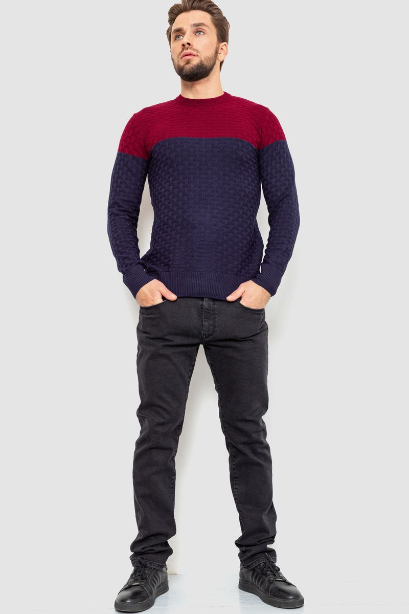 Свитер мужской двухцветный, цвет бордово-синий, 161R1205