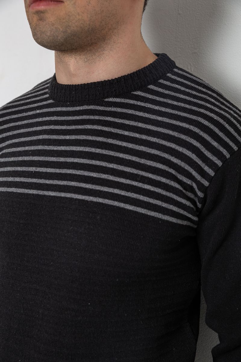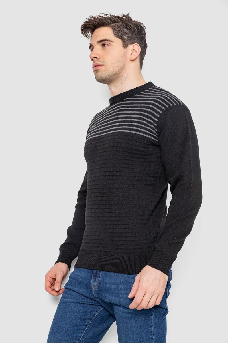 Свитер мужской в полоску, цвет черный, 161R1029