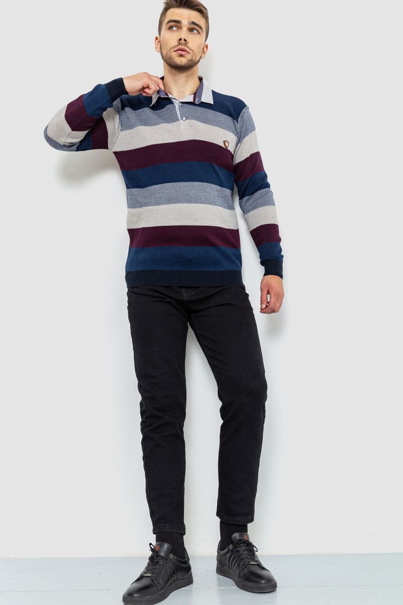 Свитер-обманка мужской в полоску, цвет сине-бордовый, 161R901-1