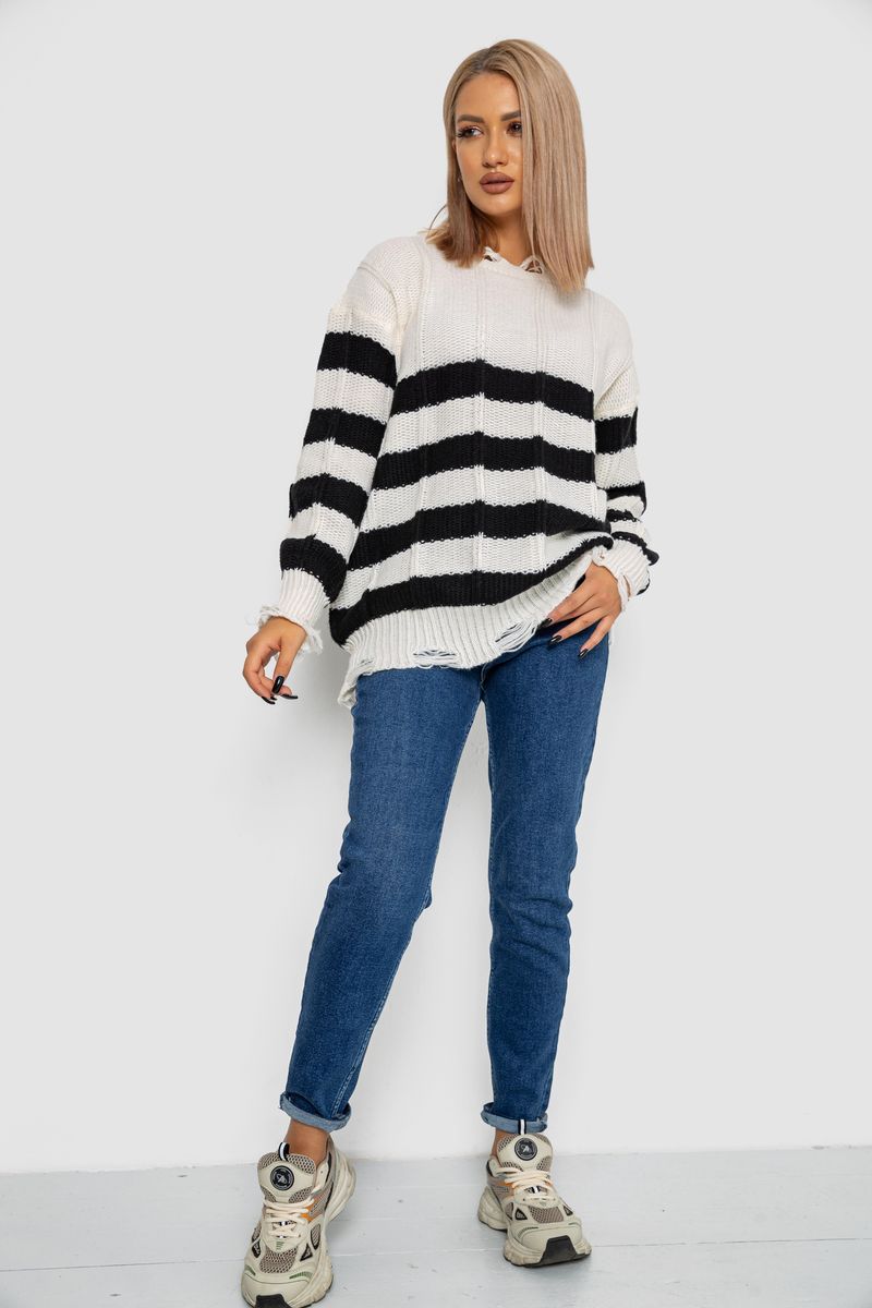 Свитер женский в полоску, цвет бело-черный, 244RA111