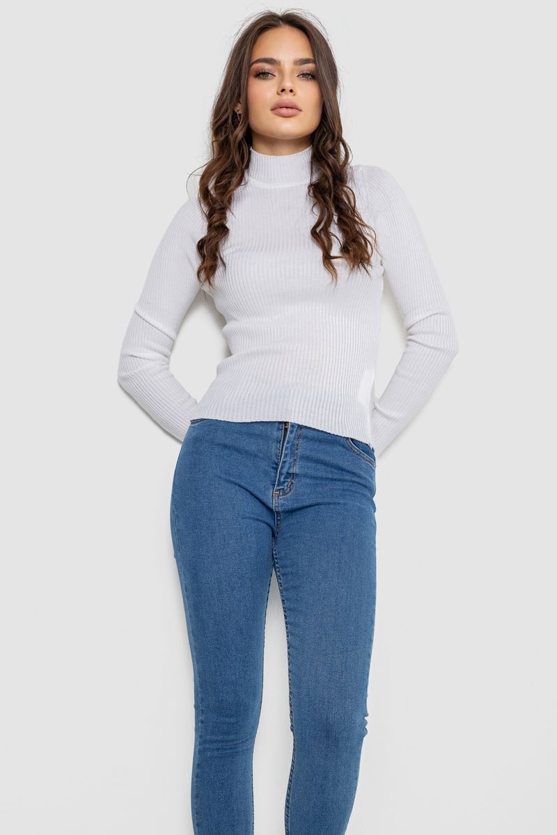 Водолазка женская в рубчик, цвет белый, 214R91306