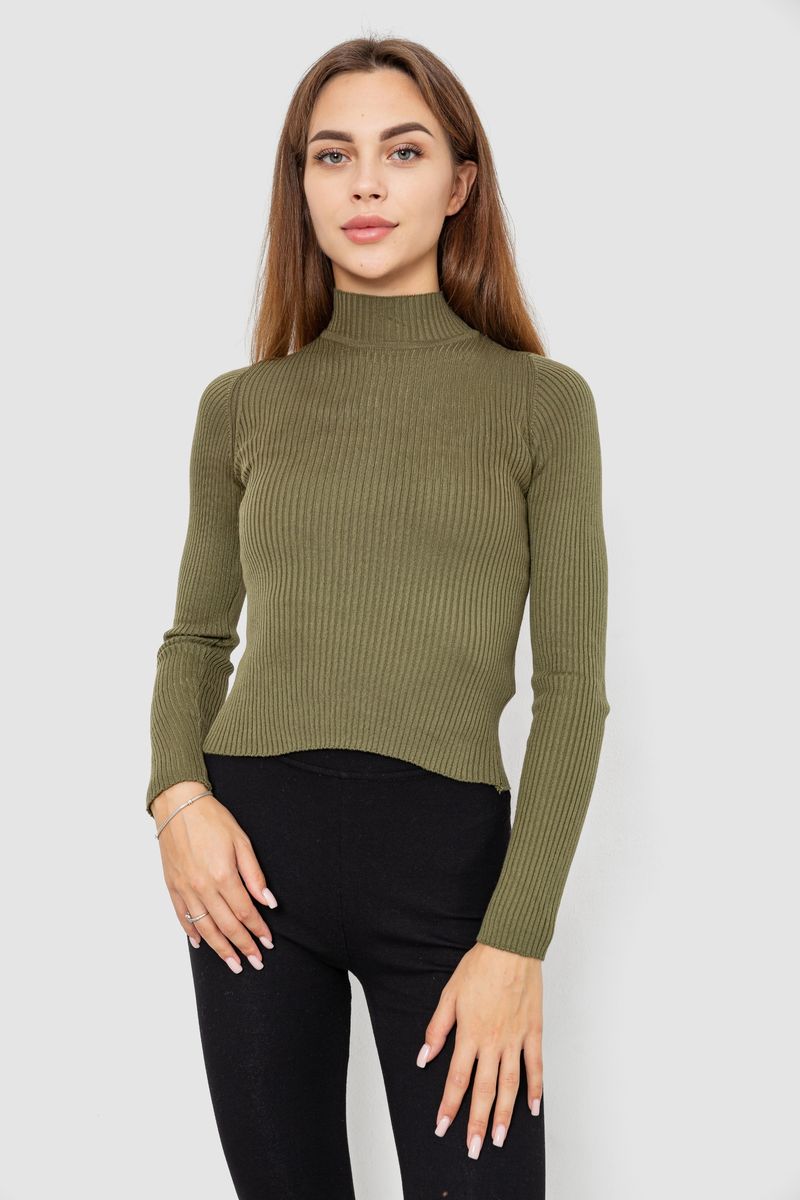 Водолазка женская в рубчик, цвет хаки, 214R91306