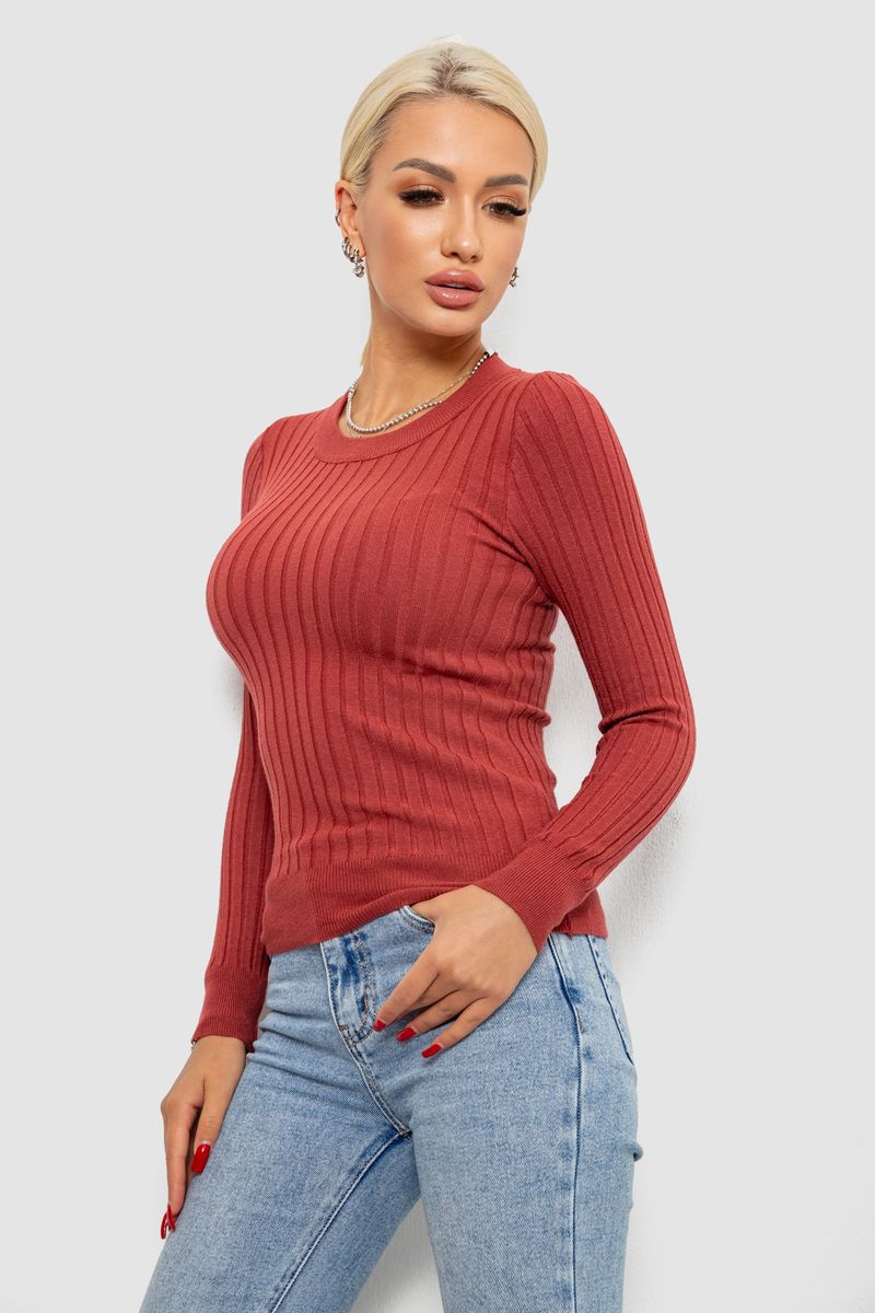 Водолазка женская в рубчик, цвет темно-коралловый, 204R9031
