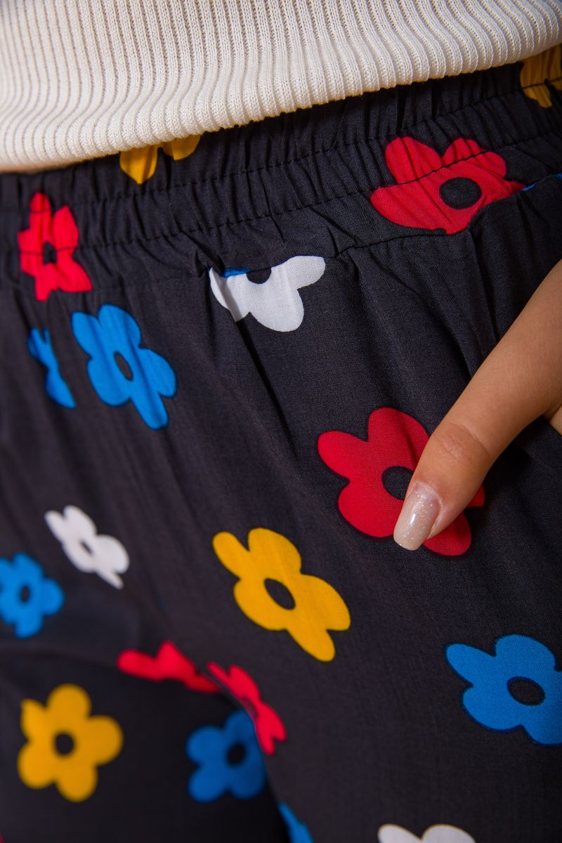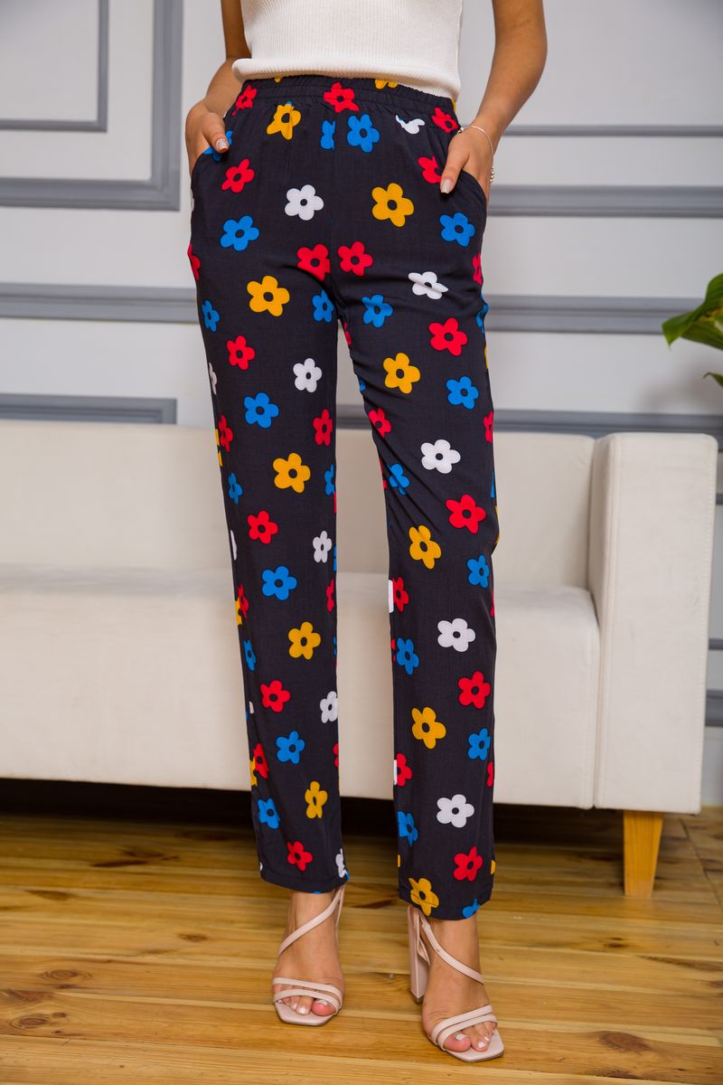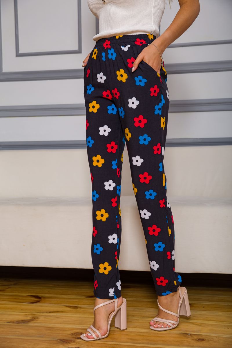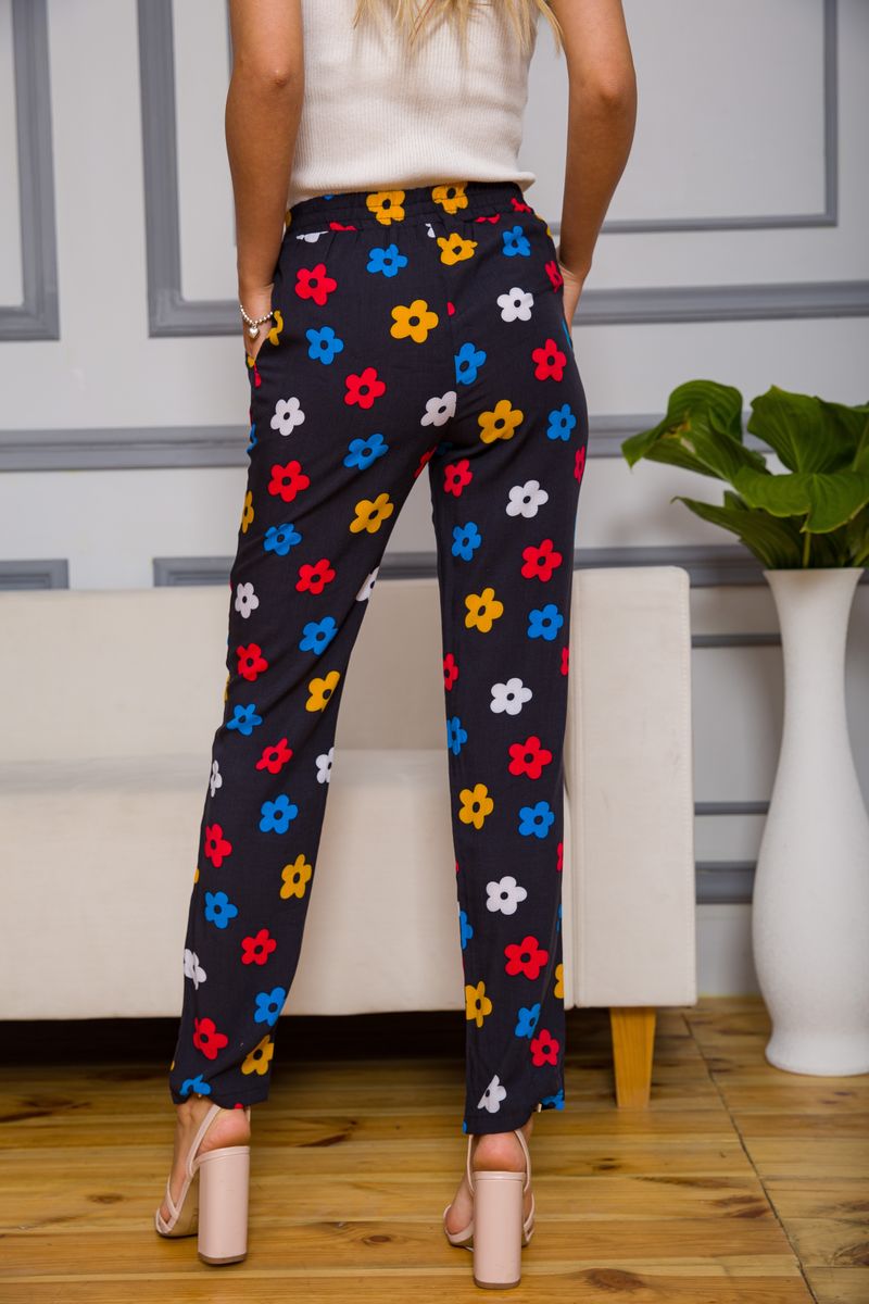 Женские брюки на резинке, черного цвета с узором, 172R076-1