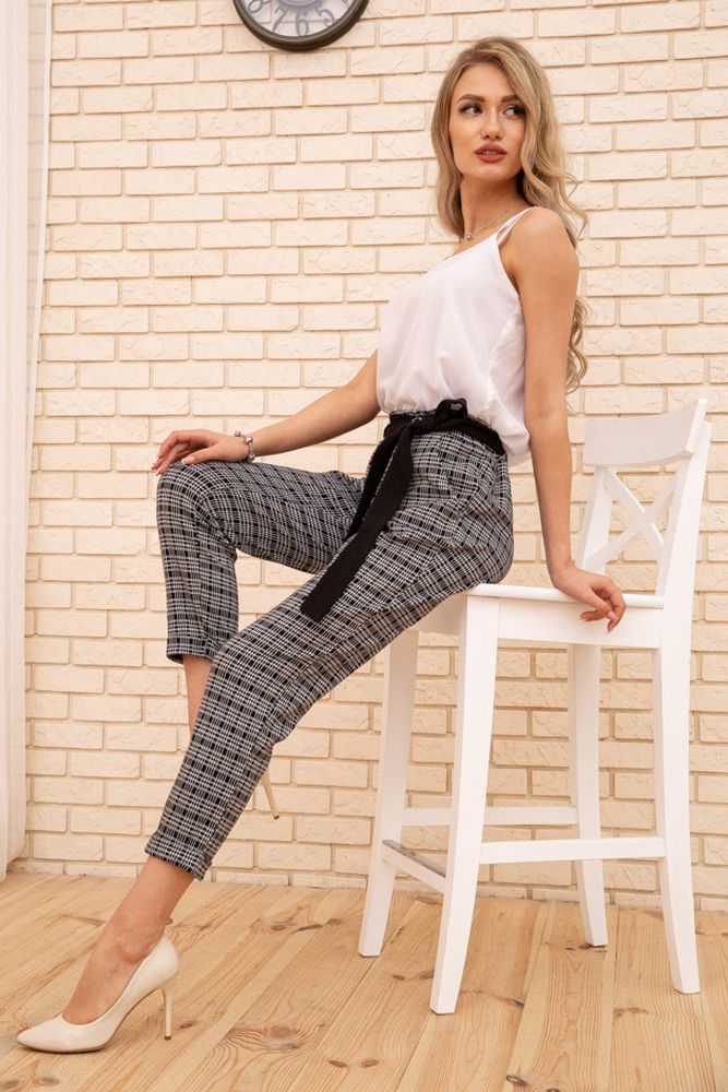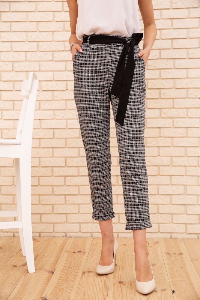 Женские укороченные брюки, в клетку, цвет Серый, 172R9313-2
