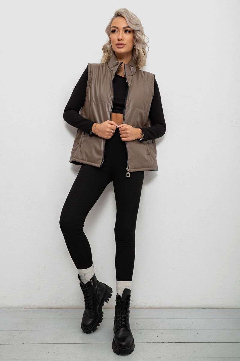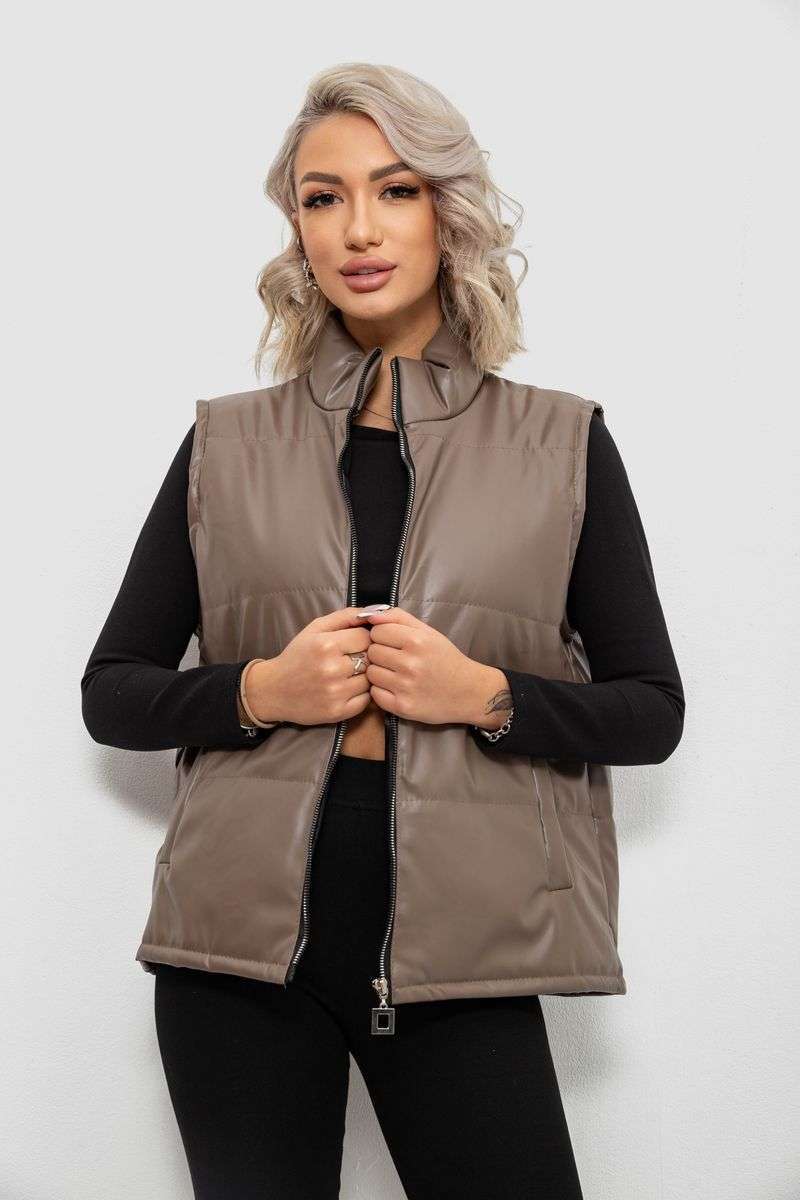 Жилет женские демисезонный экокожа, цвет коричневый, 257R65-1