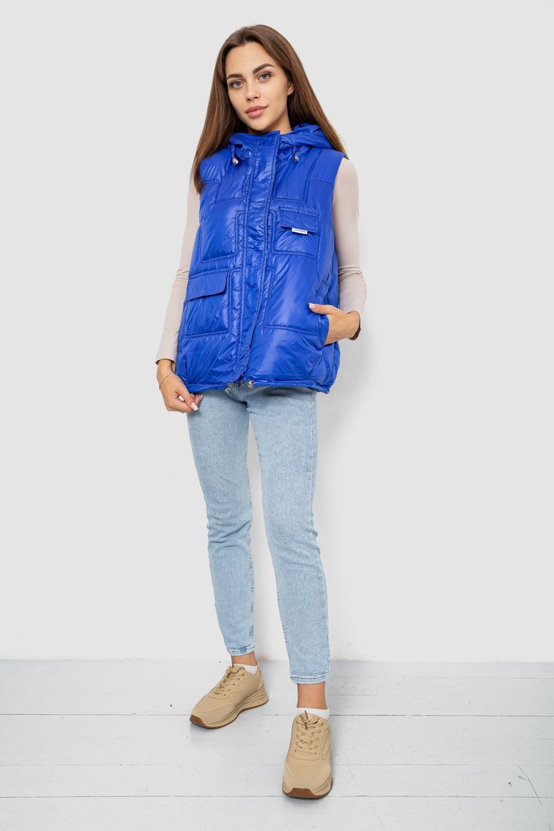 Жилет женский однотонный с капюшоном, цвет синий, 244R810